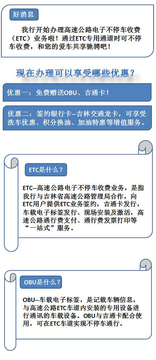 好消息!我行开办高速公路电子不停车收费(ETC)业务啦!