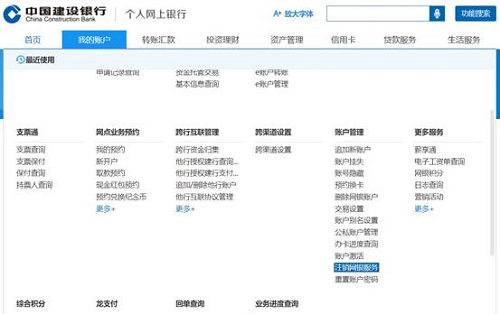 1.登录建行个人网银,在菜单“我的账户”-“账户管理”下点击“注销网银服务”。
